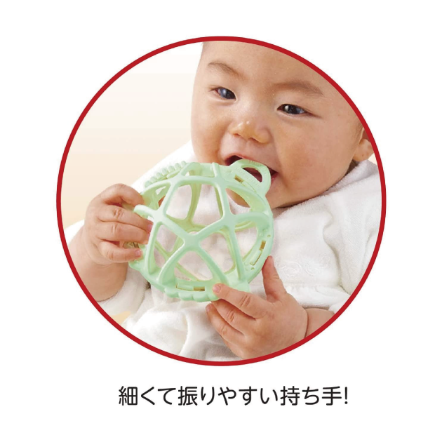 握力の弱い赤ちゃんなら、半分にしても遊べます。やわらかい素材を使用しています。何でもなめちゃう赤ちゃんのために、原料にお米を選びました。米製品・無塗装対象年齢:0ヶ月以上パッケージサイズ:125×90×150mm生産国:日本