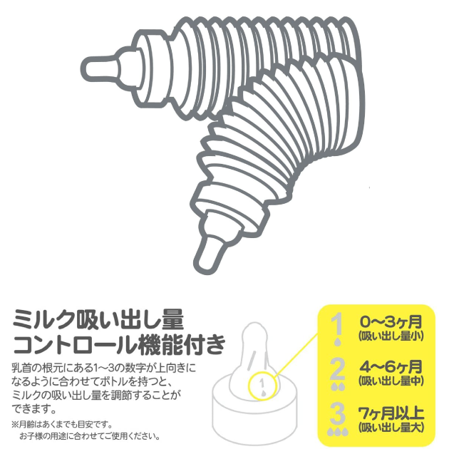 ・ミルクの吸出し量が3段階にコントロールできます。
