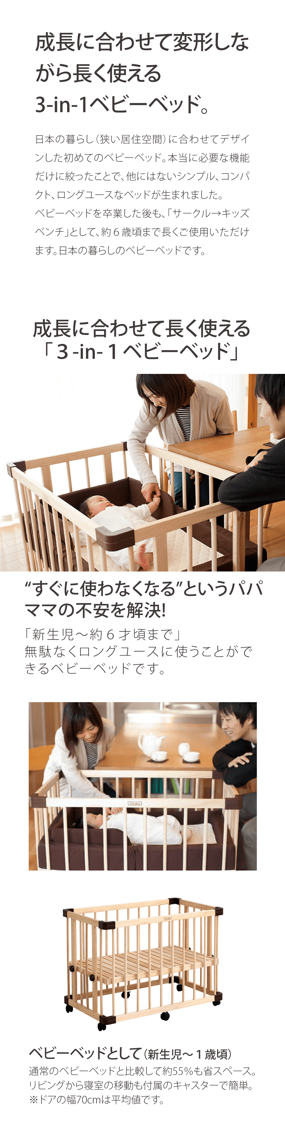 ベビーの成長に合わせて変化。長く使える新しいベビーベッド。