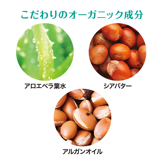 主な配合成分:オーガニックアロエベラ葉水、 オーガニックシアバター、オーガニックホホバオイル、オーガニックアルガンオイル、オーガニックラベンダーウォーター、天然ヒアルロン酸、天然オレンジ果皮油、天然マンダリンオレンジ果皮油 他