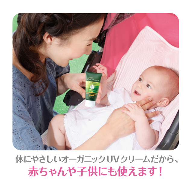 無着色・無香料・紫外線吸収剤不使用・パラベンフリーのオールシーズンタイプのオーガニック62%配合のUVクリームです。