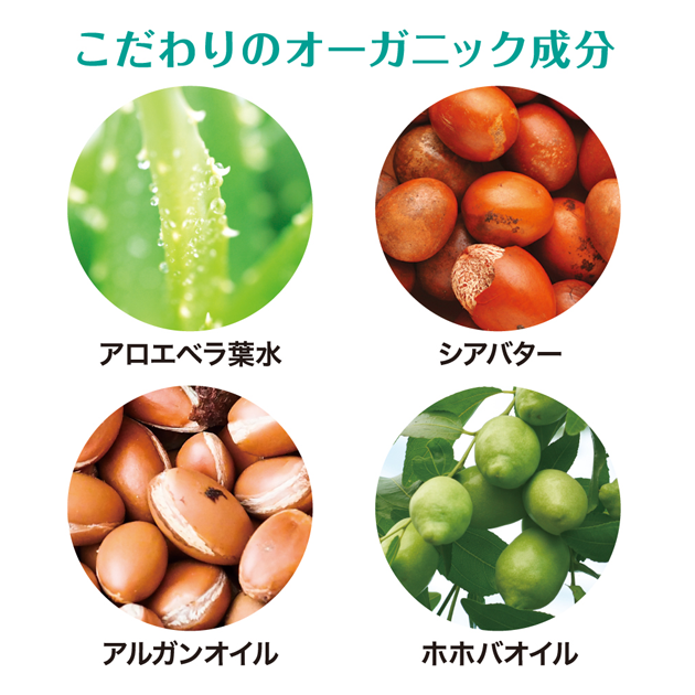 主な配合成分:オーガニックアロエベラ葉水、 オーガニックシアバター、オーガニックホホバオイル、オーガニックアルガンオイル、オーガニックラベンダーウォーター、天然シトロネラ油、天然シダーウッド、天然レモングラス 他