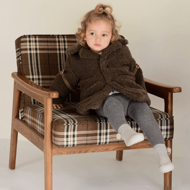 秋冬らしいベースの生地に、サイドには2色 のポンポンでアクセントを。 性別を問わず 選んでいただけるカラーリングです。