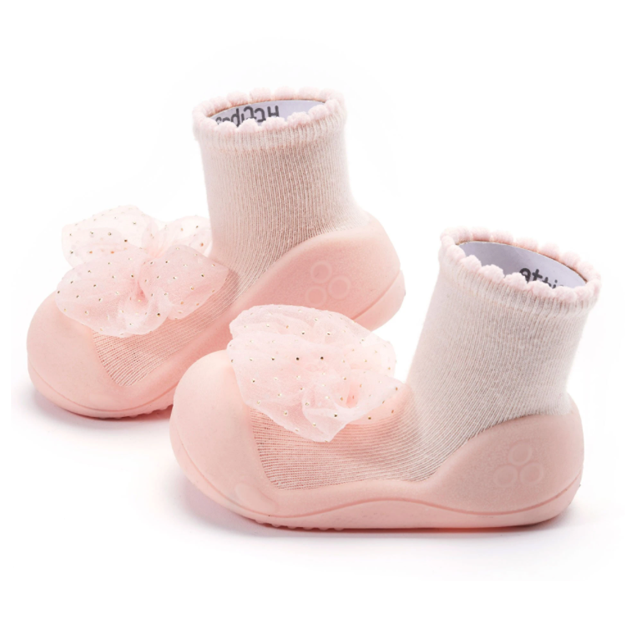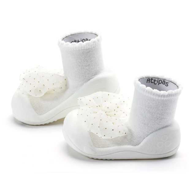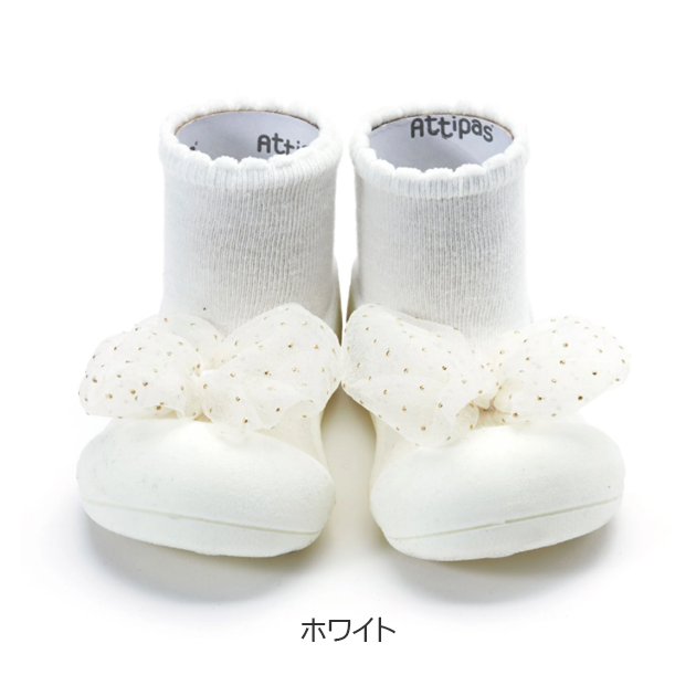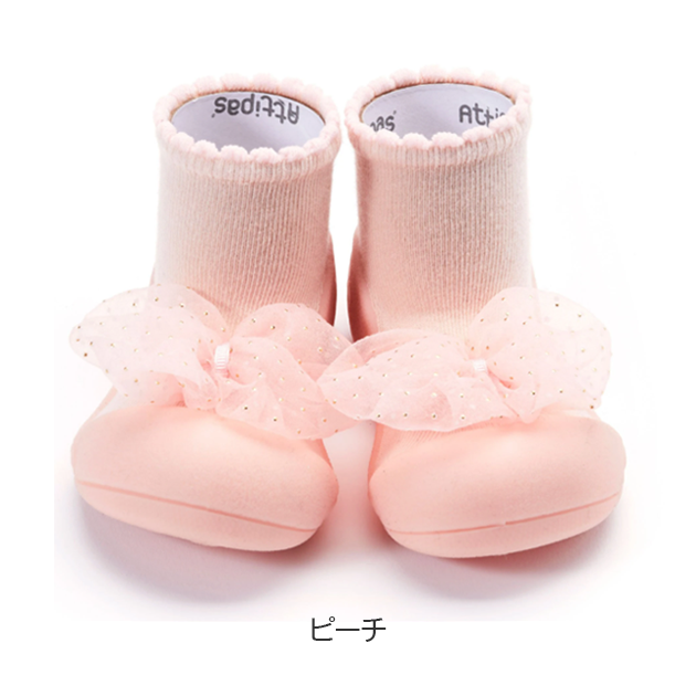 いよいよ歩き出そうとする赤ちゃんに安心のベビーシューズ「Attipas」人気アイテム、コサージュの姉妹デザイン。ラメ入りのリボンがお姫様気分を盛り立てます。 入学式や結婚式などのシーンにも。 素材 アッパー:綿・ナイロン・ポリエステル・ポリウレタン アウトソール:サーモプラスチックラバー
