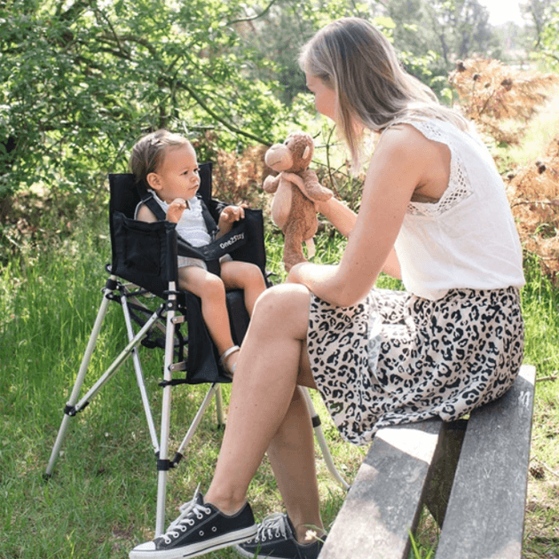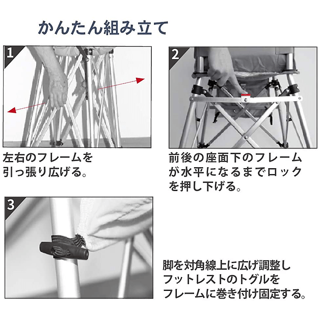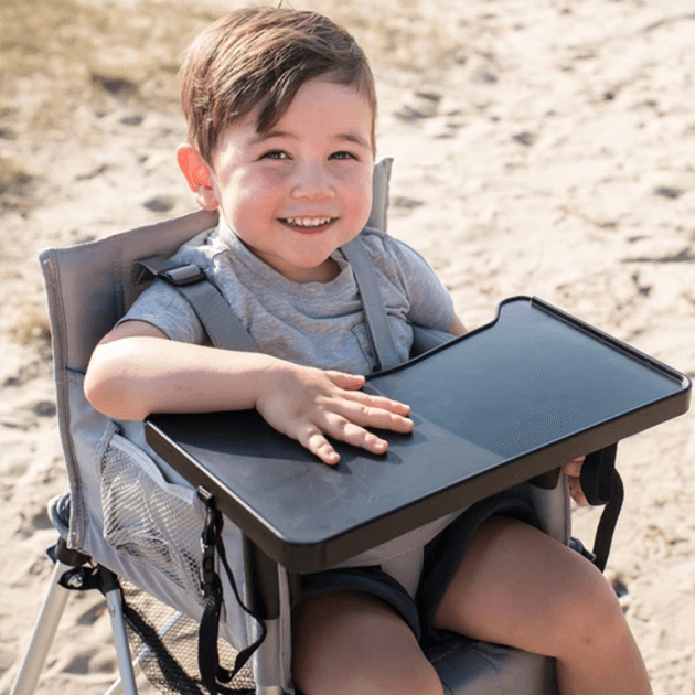 家でも外でも使える省スペース折りたたみハイチェア。