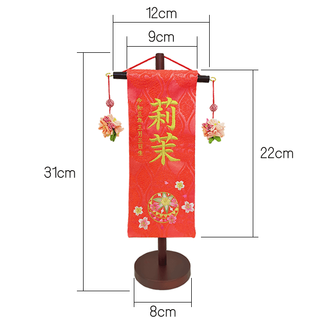 ※刺繍糸の色、文字の書体、和暦での生年月日の記入など、写真の通りとなります。