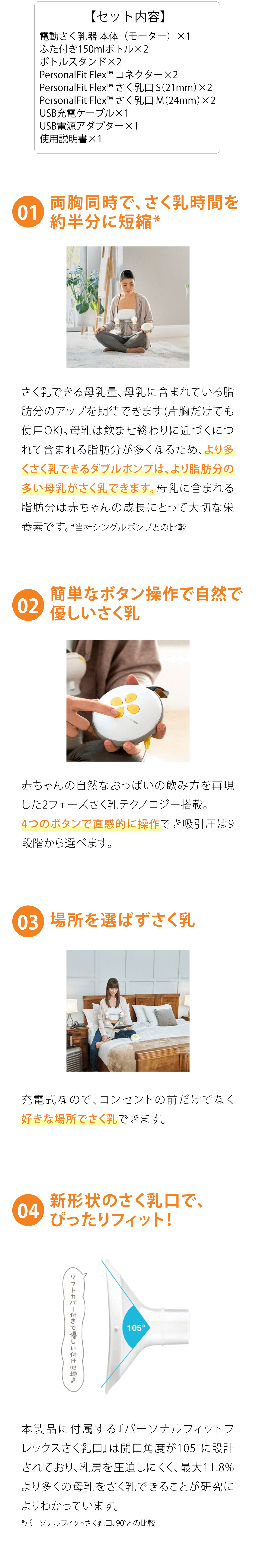 搭載され、従来のさく乳口と比べ、より快適に、より多くの母乳を