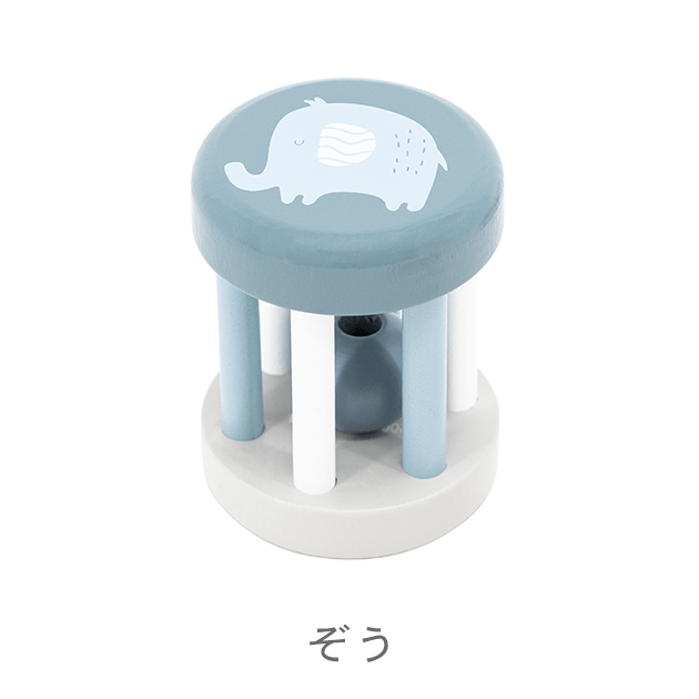 中に木製ビーズが入っている木製ラトル。振るとカラカラと音が鳴ります。ファーストギフトにおすすめです。