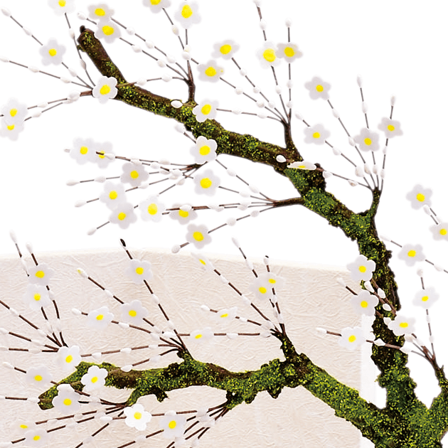 金糸で桜の花びらを刺繍した共布のお着物です。アルミ材のシルバープレート台と、和紙調の彩白屏風のセットです。