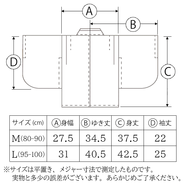 ・羽織 身幅27.5、ゆき丈34.5、身丈37.5、袖丈22(㎝)