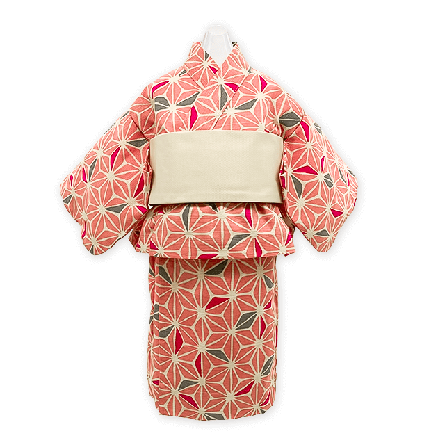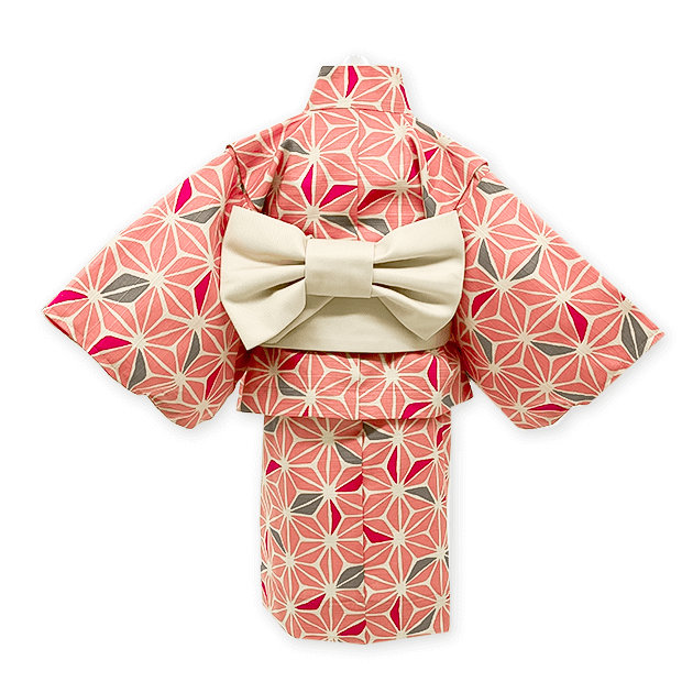 麻の葉 桃 3点セット (竹うちわ付)