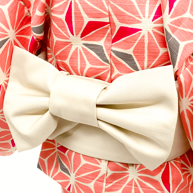 モダンな和柄と本格的な結び帯が上品な浴衣です。上と下がセパレートになっているのでスムーズに着せることができます。本格的な結び帯は帯と一体となった作り帯で、マジックテープで固定するだけで簡単にかわいく仕上がります。スカートのウエスト部分は総ゴム仕立て、ゴムの取替え口もついています。こだわりの素材と丁寧な縫製で着心地もいい日本製の浴衣です。