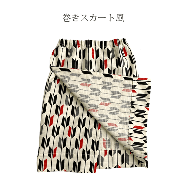 モダンな和柄と本格的な結び帯が上品な浴衣です。上と下がセパレートになっているのでスムーズに着せることができます。本格的な結び帯は帯と一体となった作り帯で、マジックテープで固定するだけで簡単にかわいく仕上がります。スカートのウエスト部分は総ゴム仕立て、ゴムの取替え口もついています。こだわりの素材と丁寧な縫製で着心地もいい日本製の浴衣です。
