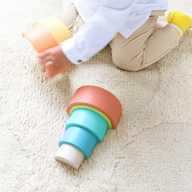 小さなお子様から遊べ、手指の発達や集中力を育める人気のスタッキングトイ。形状の異なる3種類のラインナップは、それぞれに特性があり、お子様の発達にあわせてお選びいただけます。