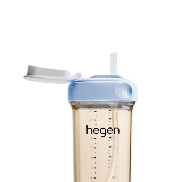 Hegenのストローマグは、赤ちゃんの自然な吸引をうながし、お口まわりの筋肉の発達をサポートするよう設計されています。生後9か月ごろからお使いいただけます。