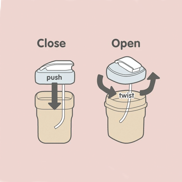 「Press-To-Close(押して閉める)、Twist-To-Open(ひねって開ける)」世界初の特許を取得しています。時短につながる楽しい育児を実現します。