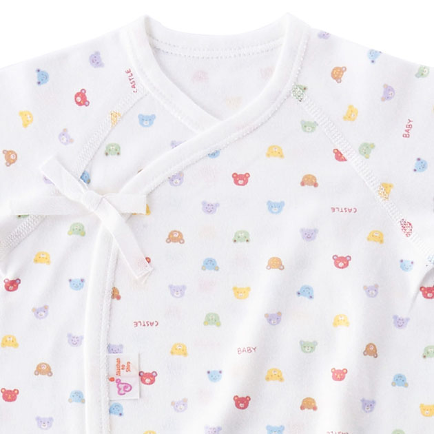 デリケートな赤ちゃんの肌に刺激を与えないように縫い目は平面縫製を採用。 型くずれしにくい衿のパイピングやほつれないひも先など、ベビー用品専門メーカのこだわりが詰まった肌着です。