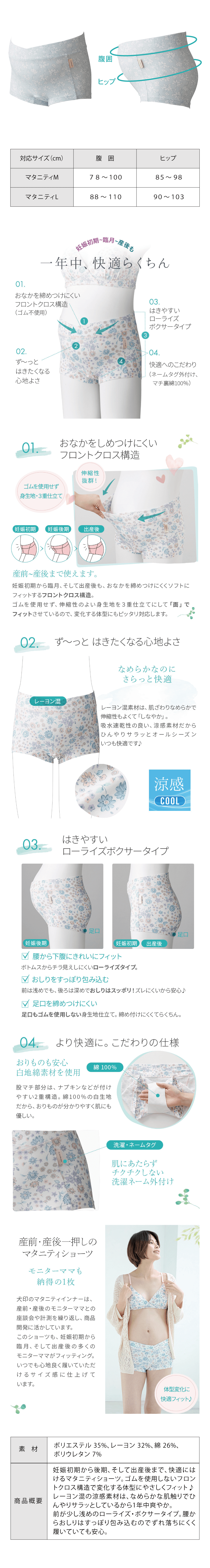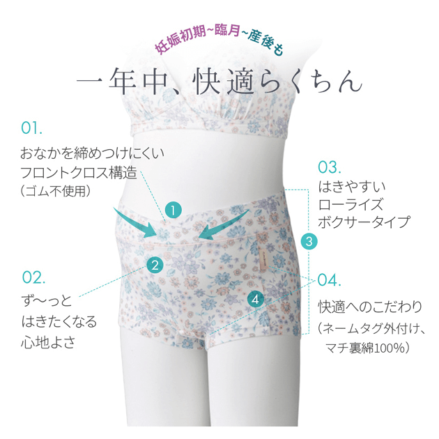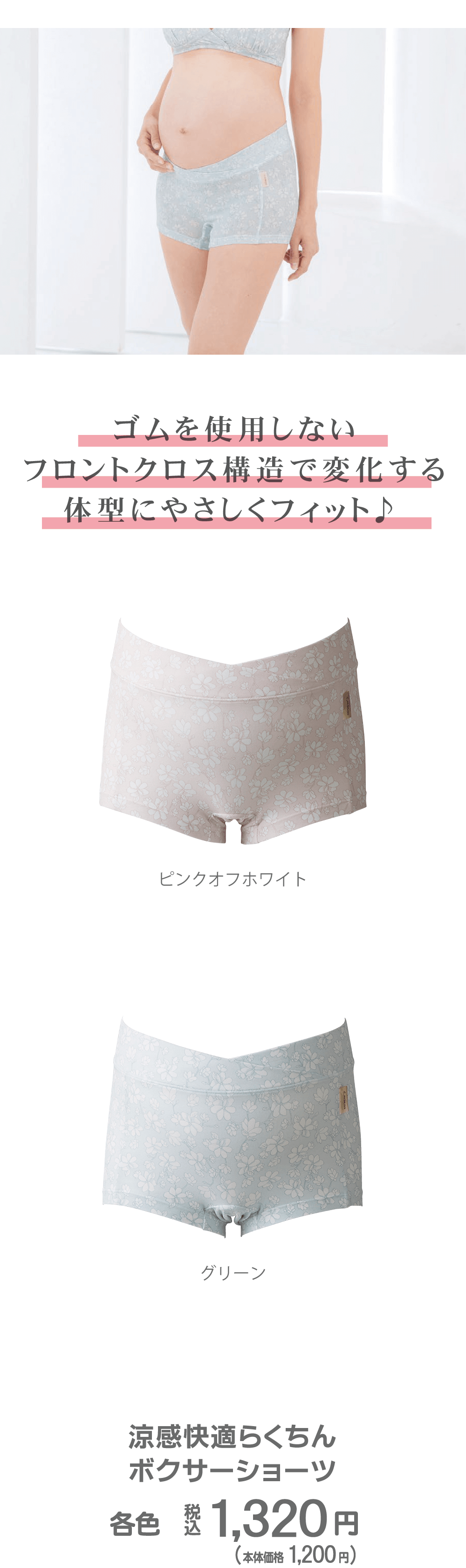 妊娠初期から後期、そして出産後まで、快適にはけるマタニティショーツです。