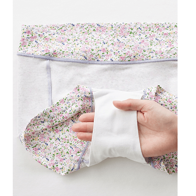 ゴムを使用しないフロントクロス構造で変化する体型にやさしくフィット。