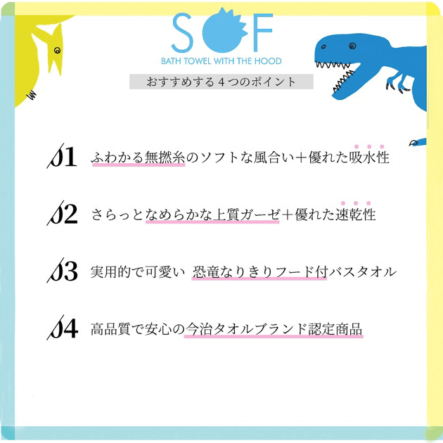 03.実用性で可愛い恐竜なりきりフード付バスタオル