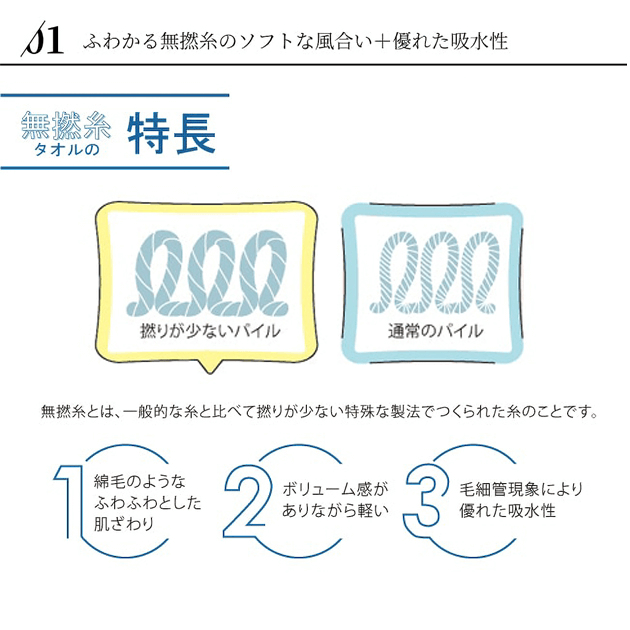 01.ふわかる無撚糸のソフトな風合い+優れた吸水性