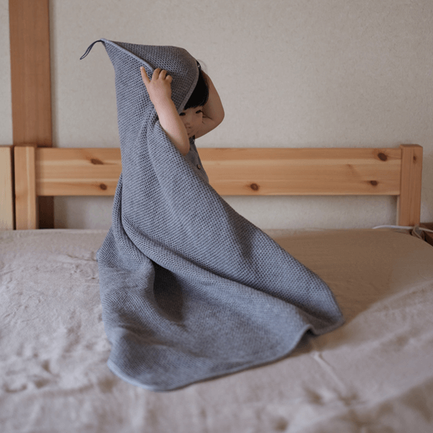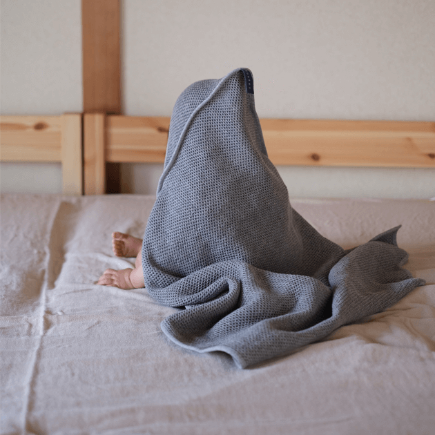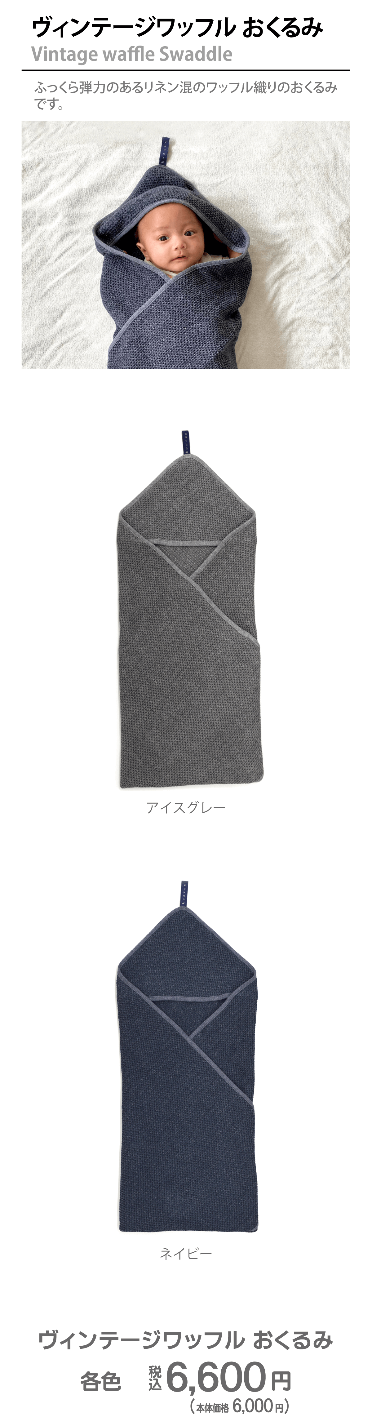 ふっくら弾力のあるリネン混のワッフル織りのおくるみです。