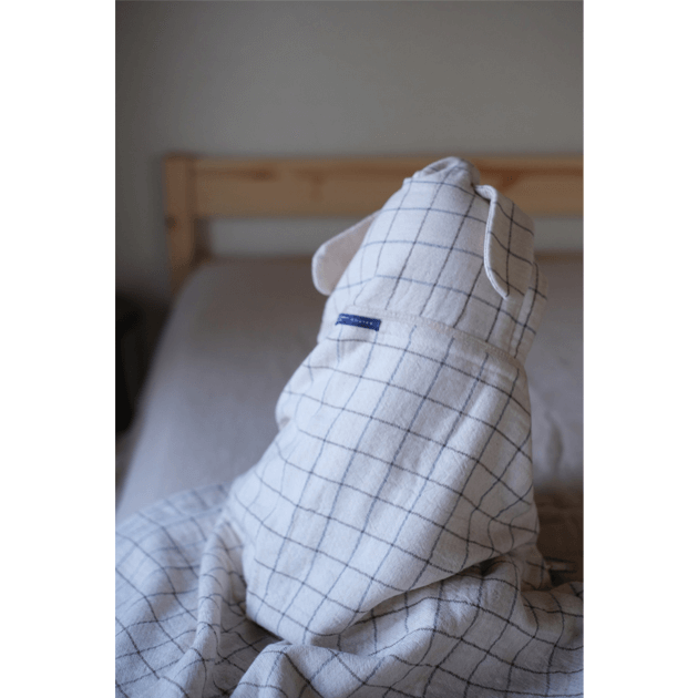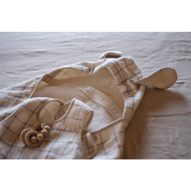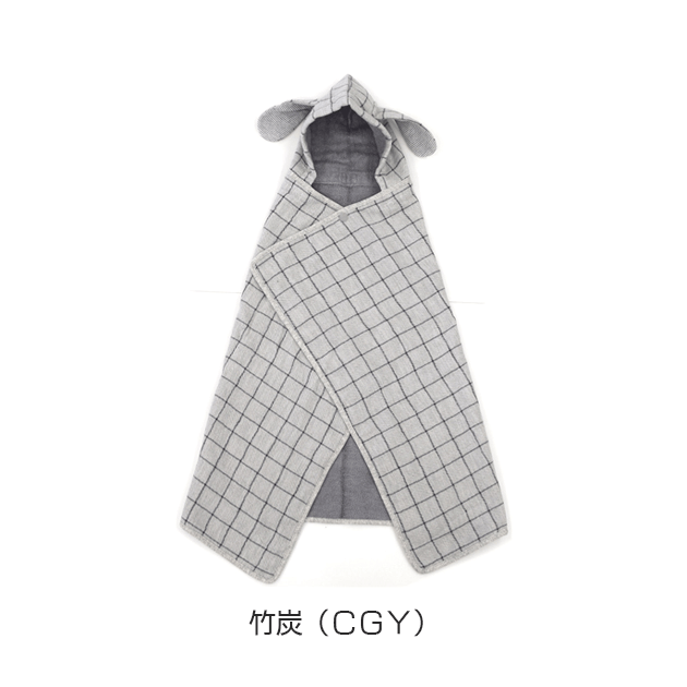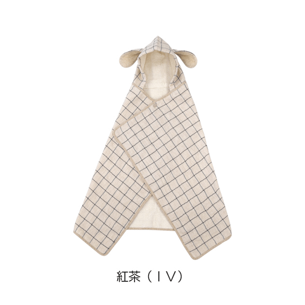 オーガニックコットン100%でナチュラルな色味とロップイヤーが可愛い、 小さめサイズのフード付バスタオルです。