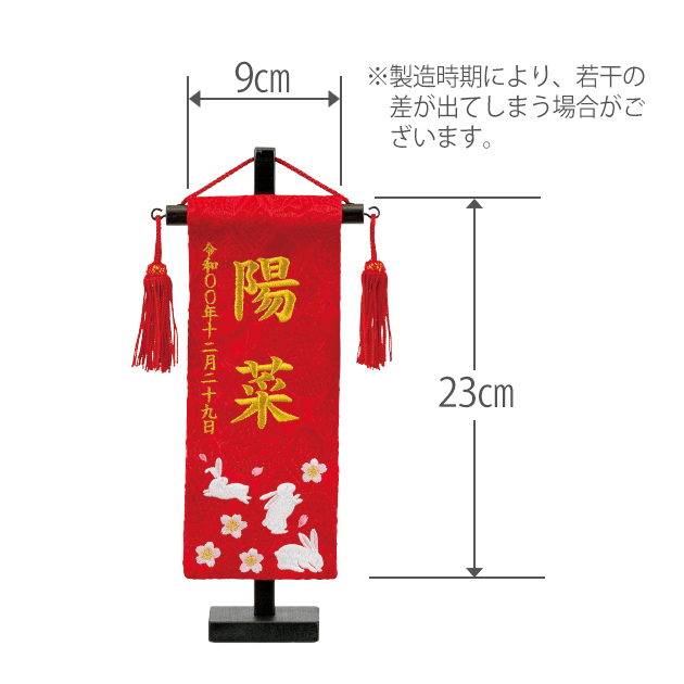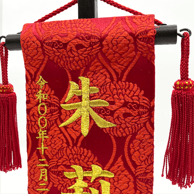※刺繍糸の色、文字の書体、和暦での生年月日の記入など、写真の通りとなります。予めご了承ください。