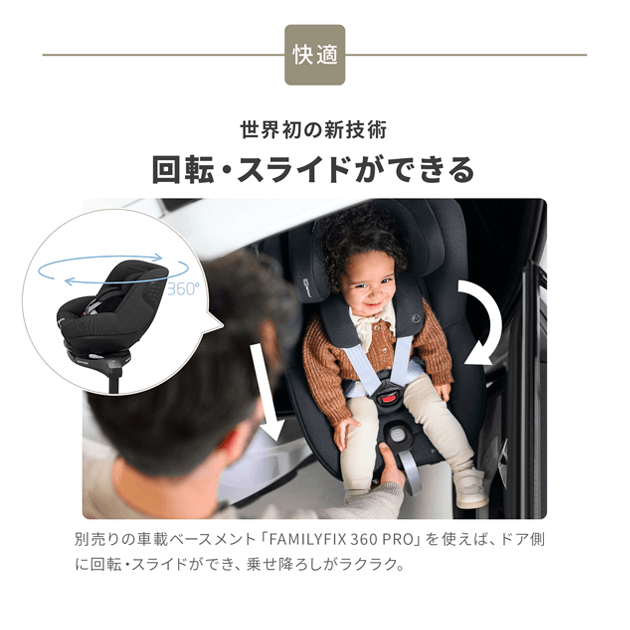 より近くで、より自然に乗せ降ろしできる幼児用チャイルドシート
