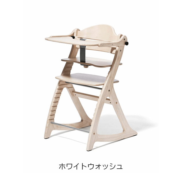 カンタンロックのノブを回すと、テーブルを後ろにまわせます。 成長に合わせて取り外しも可能。