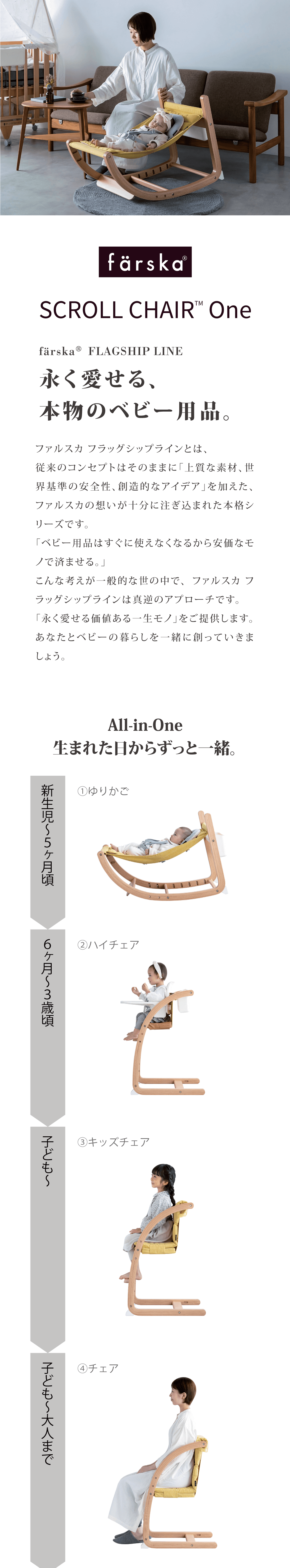 「永く愛せる価値ある一生モノ」を提供する思いでファルスカ フラッグシップライン“スクロールチェアOne”は誕生しました。