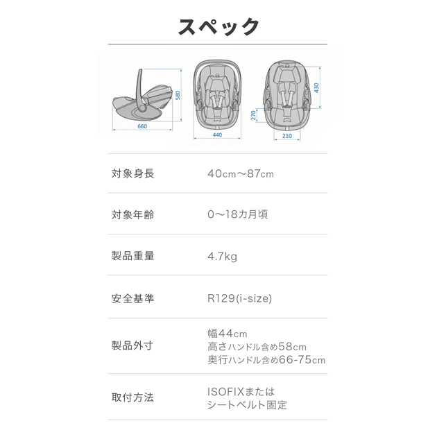 ・安全基準:R129(i-size)