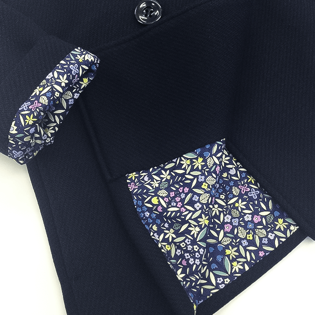 ちらりとみえる裏地のストライプがさりげないオシャレで、袖を折り曲げてストライプ柄をみせてたり、さりげないオシャレも楽しめるデザインです。