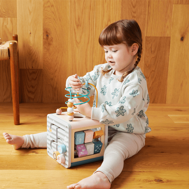 ルーピング、数字とイラストの絵合わせ、歯車、型はめ、迷路など、指先を使った遊びがたくさん!