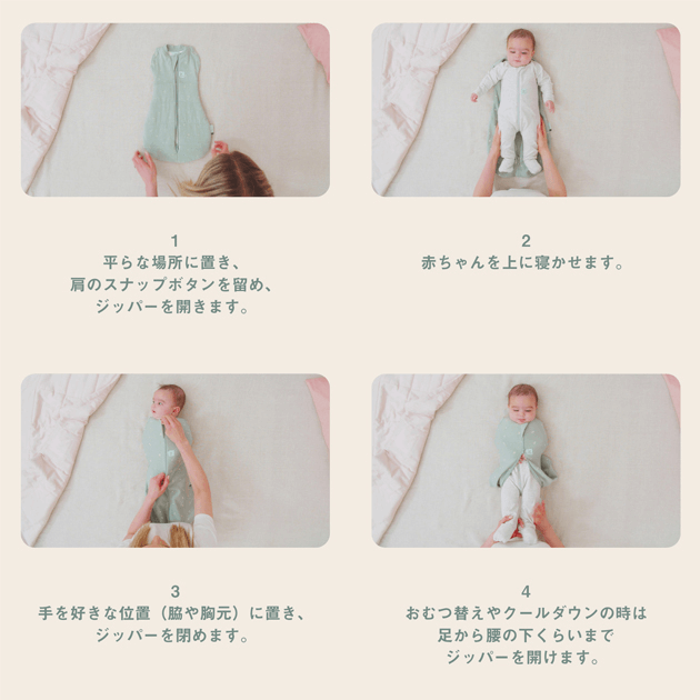 ・ジッパー式なので、おむつ交換が素早く簡単に行える