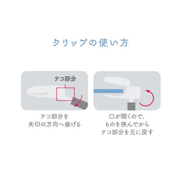 マルチクリップは、布部分は撥水・撥油加工がされていて、汚れをさっと拭き取ることができ、手洗いも可。