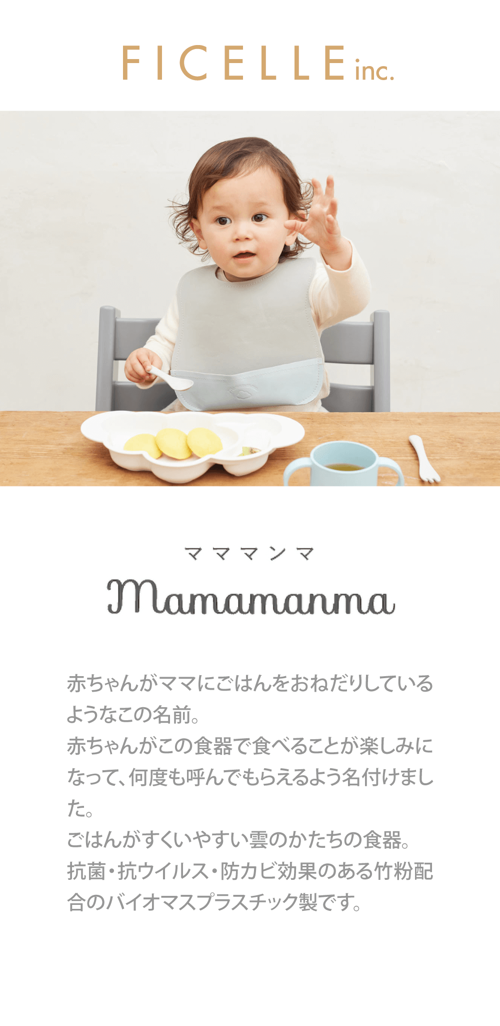 淡いパステルカラーで、マママンマシリーズの食器とお揃いでお使いいただけます。