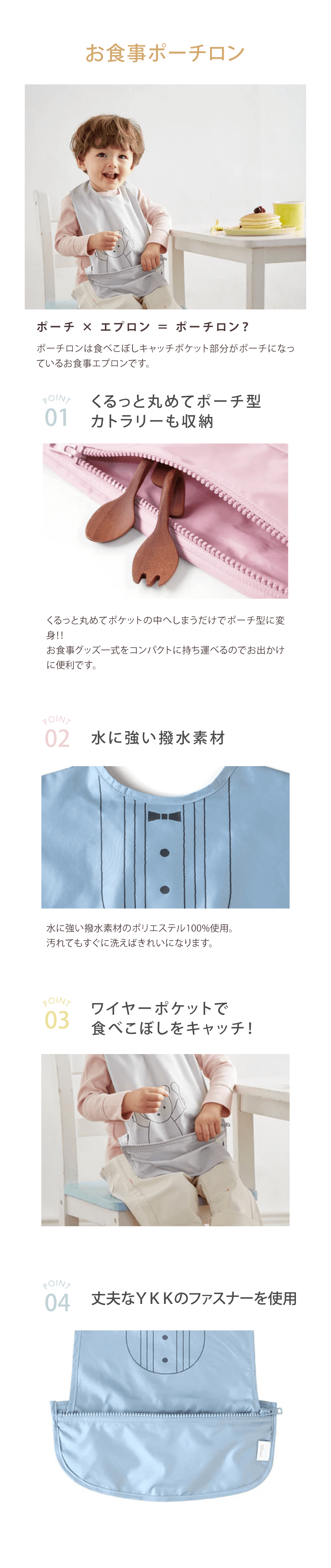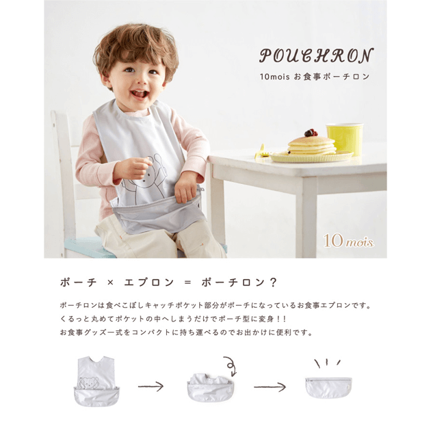 お食事エプロンとポーチの機能があわさった「ポーチロン」。