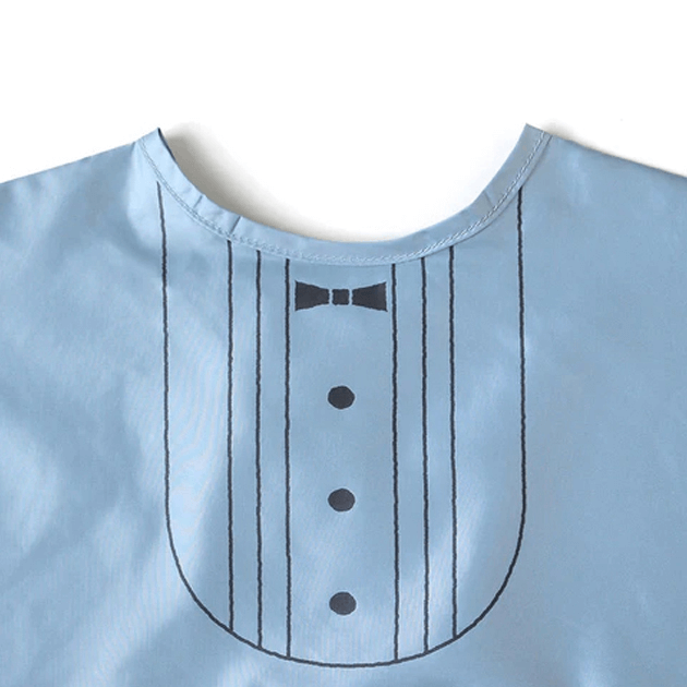 ブルーは、まるで蝶ネクタイとプラウスを着ているように見えます。