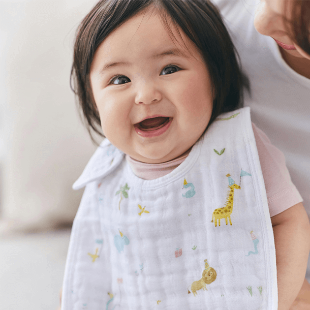 モスリン100%の生地を3層に重ねているので、柔らかな肌触りで赤ちゃんの肌にも安心してお使いいただけます。