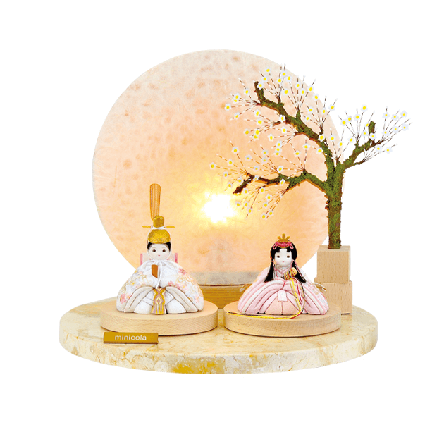 丸台に大理石を使用した可愛らしさに高級感も加わったお雛様です。