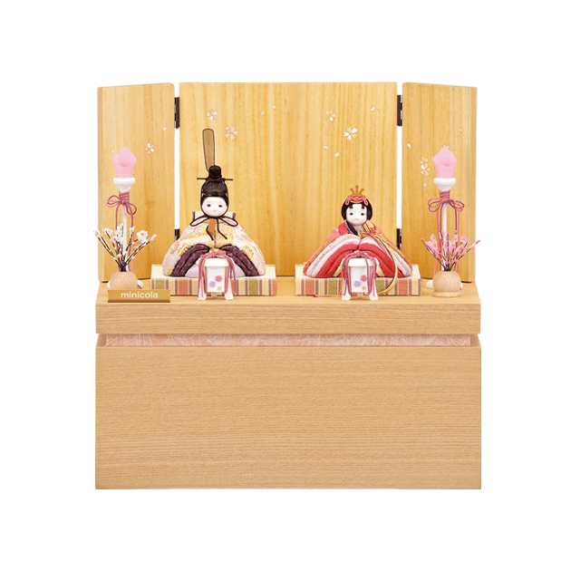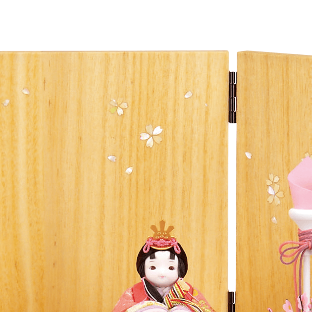 シンプルな木の収納台と、屏風に螺鈿を施した可愛らしいセットです。