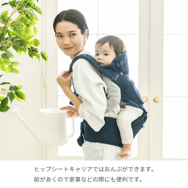 新生児期の授乳サポートや寝かしつけ、歩き出してからのちょい抱きまで、あらゆるシーンで大活躍!腰ベルトを巻くだけで簡単に装着できるので、抱っこひもの装着が苦手な方も簡単にお使いいただけます。