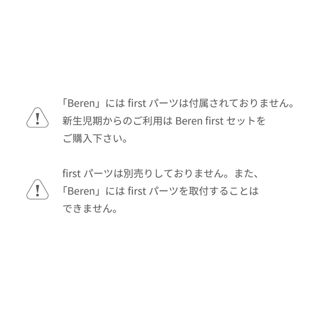 ※「Beren」にはfirstパーツは付属されておりません。新生児期からご利用はBeren firstセットをご購入下さい。