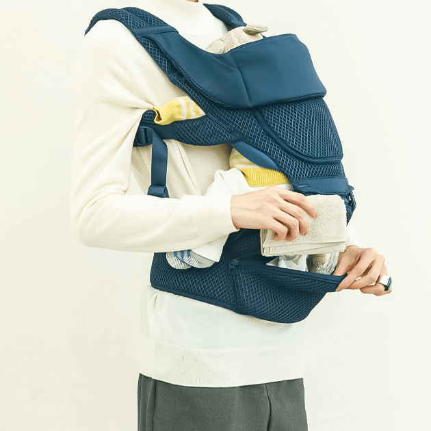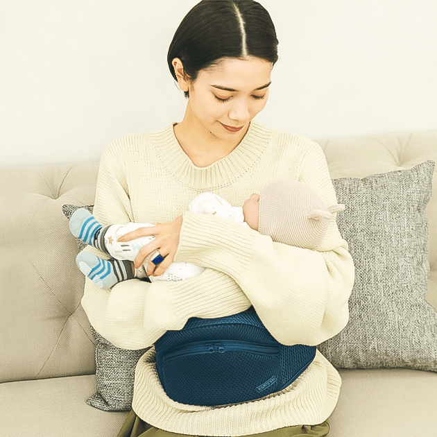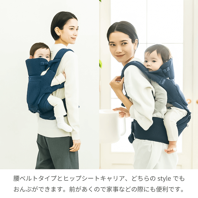 新生児期の授乳サポートや寝かしつけ、歩き出してからのちょい抱きまで、あらゆるシーンで大活躍!腰ベルトを巻くだけで簡単に装着できるので、抱っこひもの装着が苦手な方も簡単にお使いいただけます。