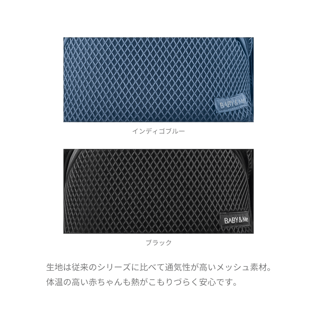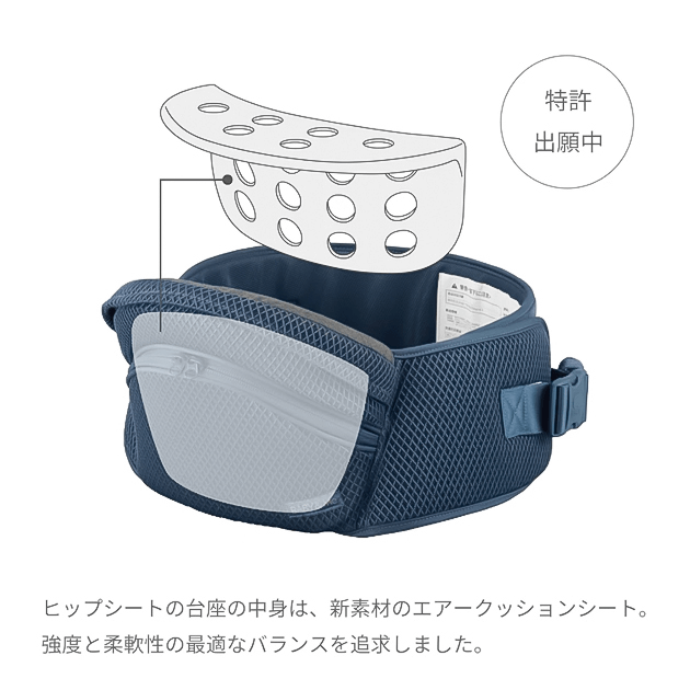 立体構造のおしりスポットで赤ちゃんのおしりをしっかりと包みこみ、自然なM 字開脚をサポート。Cカーブの姿勢を正しく保ち、密着度の高い抱っこができます。