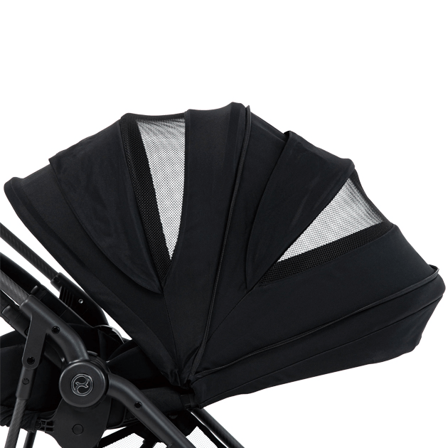 ウィンドウサイズが拡大。サイドまで広がったことで、さまざまな角度からお子さまを見守ることができ、さらに背面のメッシュシートと合わせてシート内の空気の流れをよくします。