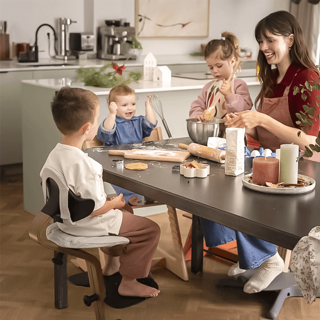 お子さまが家族と同じテーブルに快適に座ることができると、家族が集う食事の時間もより充実し、楽しいものになります。ストッケ ノミチェアは、お子さまの成長に合わせて座面・足のせ板の高さ・奥行きを調節できるので、お子さま自身が本能的に座りやすいと感じる理想のポジションを見つけることを可能にします。アクティブなお子さまの、どんな座り方でも受け入れる椅子、それがノミ チェアです。