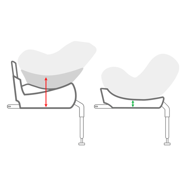 生まれてすぐの小さな赤ちゃんは、よりフラットに近い状態で、赤ちゃんにとって自然で快適な姿勢を保ちます。 成長して大きくなったら、バックレストに背中を預けて姿勢よく座れるように、シートをしっかり起こすことができます。 後向き装着・前向き装着どちらでも、シートリクライニング角度は5段階調節が可能で、お子さまの様子や成長に合わせて最適なポジションに簡単に調節できます。
