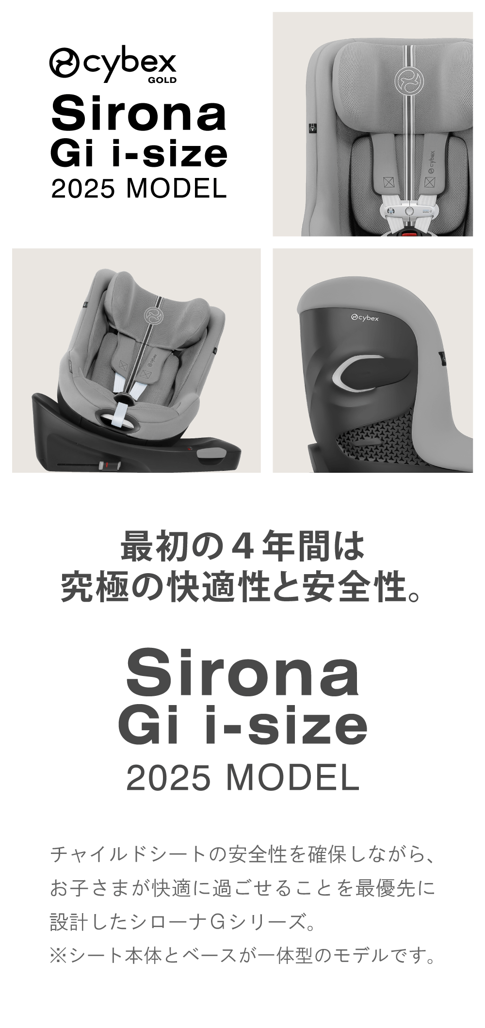 チャイルドシートの安全性を確保しながら、お子さまが快適に過ごせることを最優先に設計したシローナGシリーズ。
